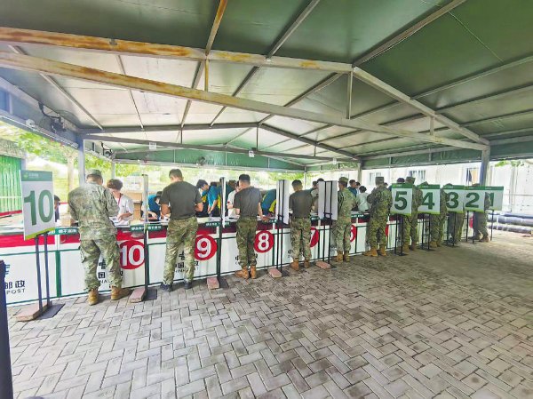 在臨時服務(wù)網(wǎng)點(diǎn),官兵們用郵秩序井然。