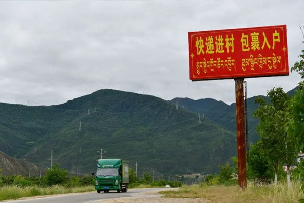 離開冷達鄉(xiāng)郵政所,采訪組繼續(xù)前行,不多時便抵達了加查縣人口最多的行政村——共康村。剛進村口,就看到了村委會門前那塊寫著“快遞進村、包裹入戶、電商賦能、物流惠民”的標牌,字里行間透著郵政服務(wù)與村民生活的緊密聯(lián)結(jié)。