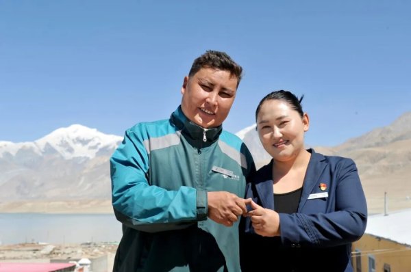告別紅其拉甫國(guó)門(mén),采訪組來(lái)到阿克陶縣布倫口鄉(xiāng)郵政所——這個(gè)嵌在慕士塔格峰下的郵政網(wǎng)點(diǎn),由柯?tīng)柨俗巫宸蚱薨D爾·艾米扎和阿依圖拉·喀斯木攜手經(jīng)營(yíng)。