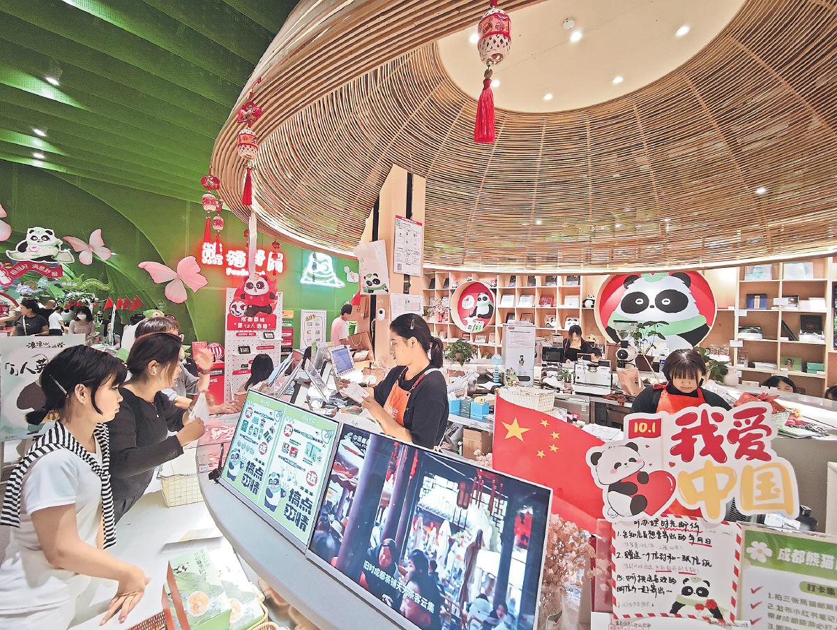 國慶中秋假期,成都熊貓郵局暑襪街旗艦店內洋溢著濃厚的節日氣氛。來自新疆的曾女士一句“山河錦繡,盛世如愿”的手寫祝福,與眾多明信片和信件一起,從成都飛向全國各地,傳遞著人們對祖國的深情。