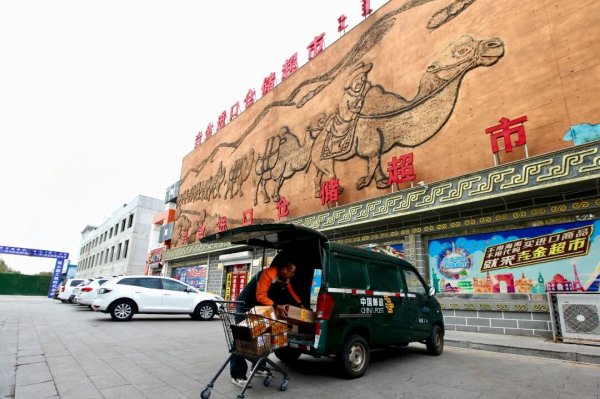 在二連浩特市的垚金進(jìn)口倉儲超市里,攬收員廖海雨一天兩次來攬收郵件,使游客們買到的商品能夠當(dāng)天發(fā)出直發(fā)回家。