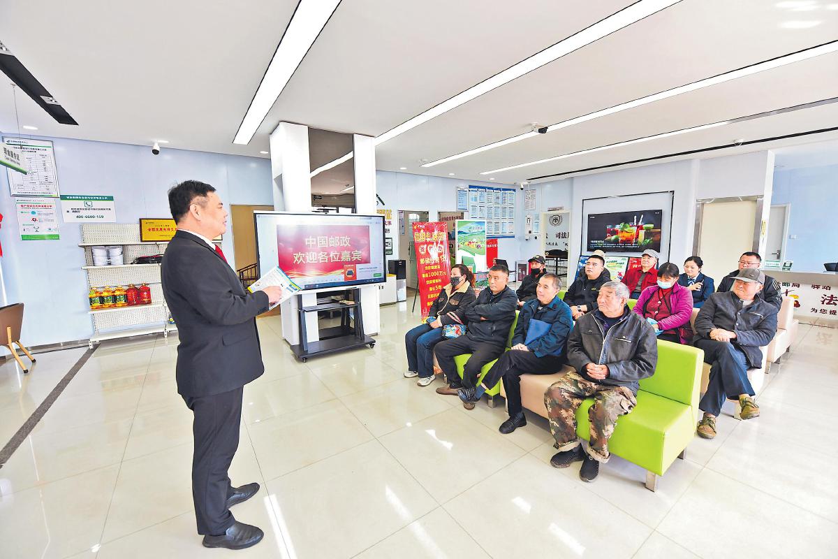 10月20日,沂源縣人民法院東里法庭負責人齊元林到法郵服務站給農民普法。