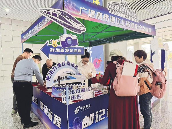 日前,廣州至湛江高速鐵路開通運(yùn)營(yíng),為粵西地區(qū)經(jīng)濟(jì)社會(huì)發(fā)展注入新動(dòng)能。湛江市郵政分公司在湛江北站設(shè)立臨時(shí)郵局,推出通車紀(jì)念封和明信片。不少旅客現(xiàn)場(chǎng)書寫明信片,加蓋紀(jì)念郵戳,把“活力湛江”寄給親朋好友。