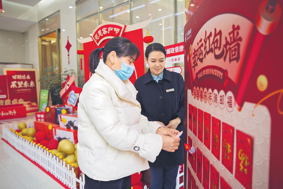 元旦佳節(jié)臨近,為回饋廣大客戶長期以來的支持,營造喜慶祥和的節(jié)日氛圍,湖北省十堰市郵政分公司組織各支局網(wǎng)點開展“一馬當(dāng)先”迎新年廳堂活動。各網(wǎng)點精心布置,張貼“一馬當(dāng)先”窗花和“福”字,積極邀約客戶參加新年抽紅包、兌好禮等活動,進一步增強了客戶黏度,提升了客戶對郵政服務(wù)的認同感。