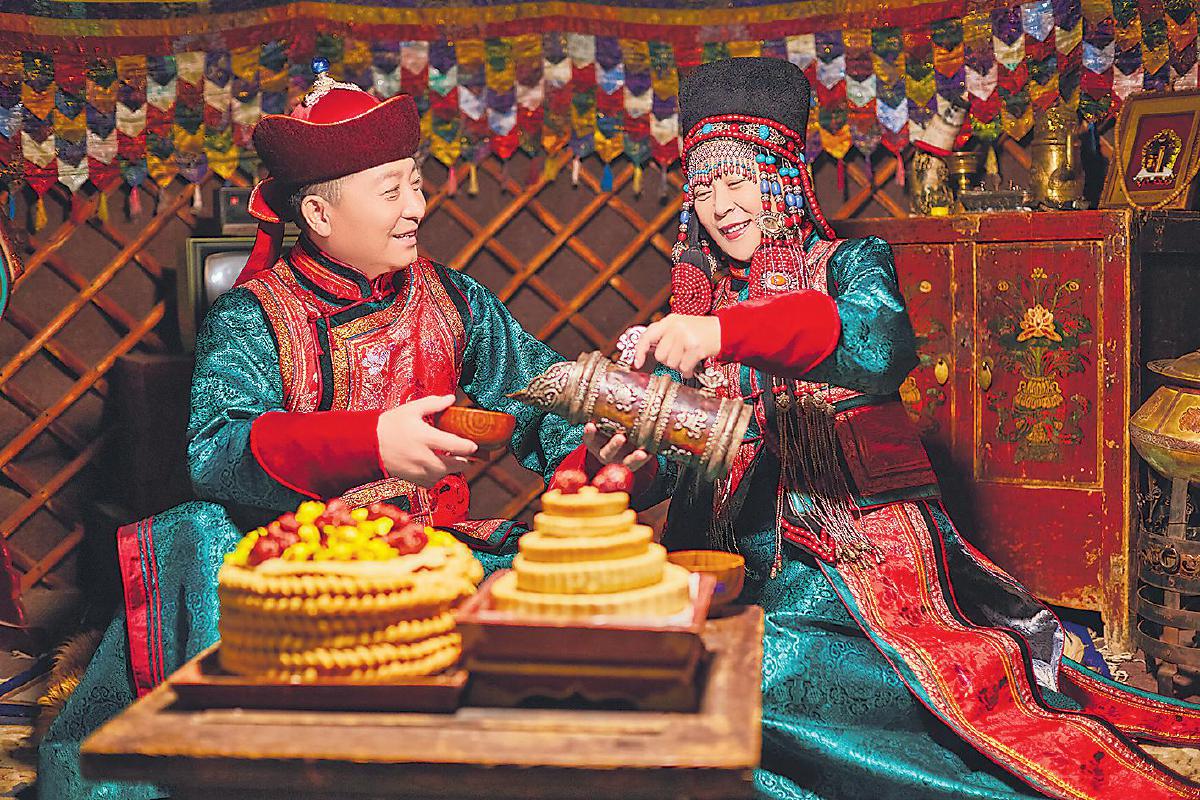 身著傳統(tǒng)蒙古族服飾的夫妻。