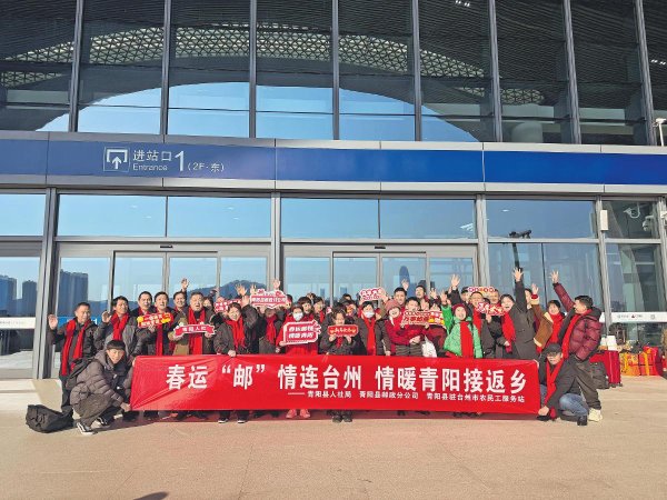2月9日,安徽省青陽縣郵政分公司聯(lián)合縣人社局,在浙江臺州高鐵站免費(fèi)接務(wù)工老鄉(xiāng)返鄉(xiāng)?! 鯇庢谩z