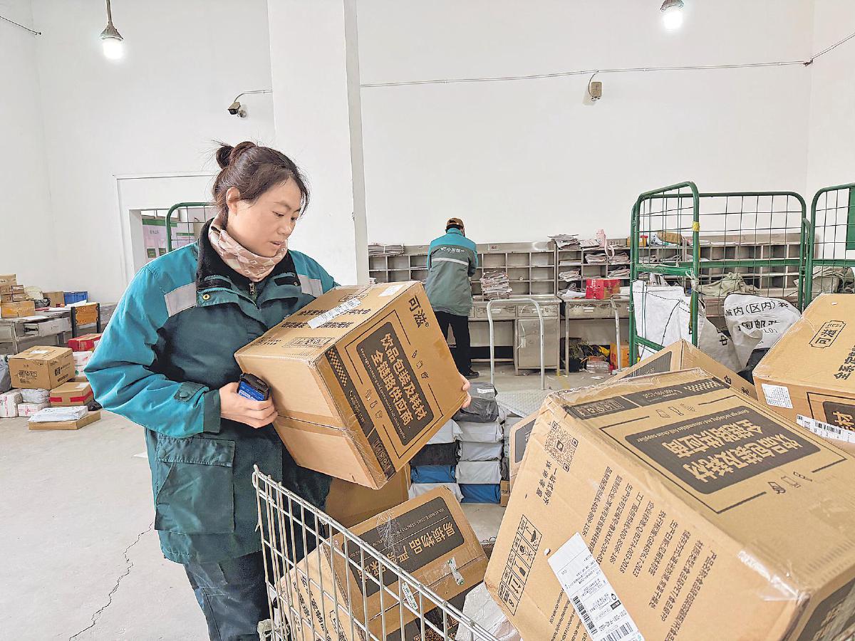 “春節(jié)期間很多快遞驛站歇業(yè),不少商戶和居民等著收件,今天是假期最后一天,復(fù)工復(fù)產(chǎn)的件量格外大?!壁w艷萍一邊整理著包裹,一邊笑著跟記者打招呼。她負(fù)責(zé)的投遞區(qū)域有多個(gè)社區(qū)和商貿(mào)市場(chǎng),客戶中既有老舊小區(qū)的獨(dú)居老人,也有急于補(bǔ)貨的臨街商戶,是攬投部里最繁雜的段道之一。
