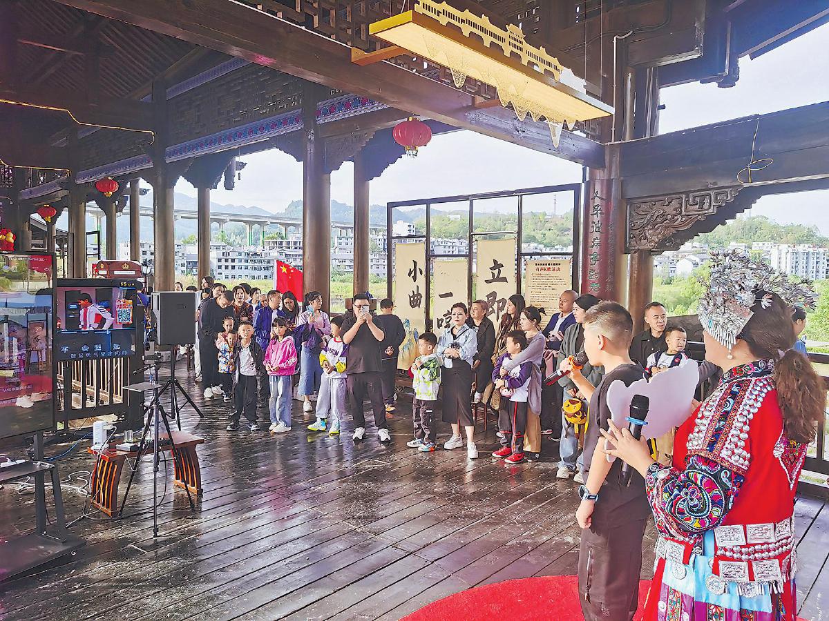 濯水風(fēng)雨廊橋免費(fèi)歌唱活動(dòng)引來(lái)游客駐足。 □白芹芹 攝