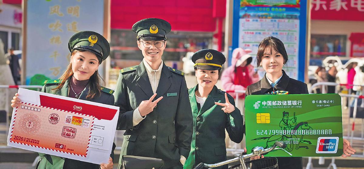 2月21日,正月初五,湖北省荊州市沙市區(qū)北京中路上鑼鼓喧天、人頭攢動(dòng)。由沙市區(qū)政府主辦的“有味沙市·民俗巡游嘉年華”在此熱鬧舉行,舞龍舞獅、五蝦鬧鲇等非遺表演輪番登場,吸引了《人民日報(bào)》、新華社等多家央媒聚焦報(bào)道。在這場沉浸式的年味盛宴中,由荊州市郵政分公司組織的40名員工方隊(duì)融入巡游隊(duì)伍,并在終點(diǎn)設(shè)立臨時(shí)主題郵局,將郵政服務(wù)嵌入文旅場景,讓“郵政綠”成為新春活動(dòng)中一道亮眼的風(fēng)景。
