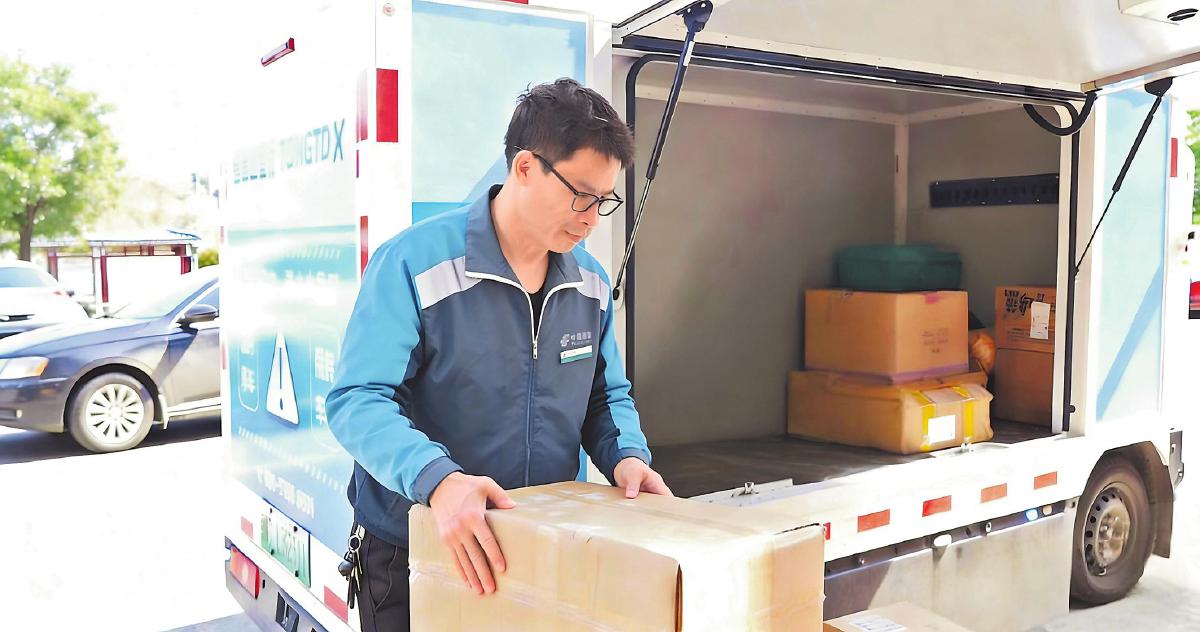 投遞員將包裹放進(jìn)無(wú)人配送車(chē)?!鯕W陽(yáng)錦 攝